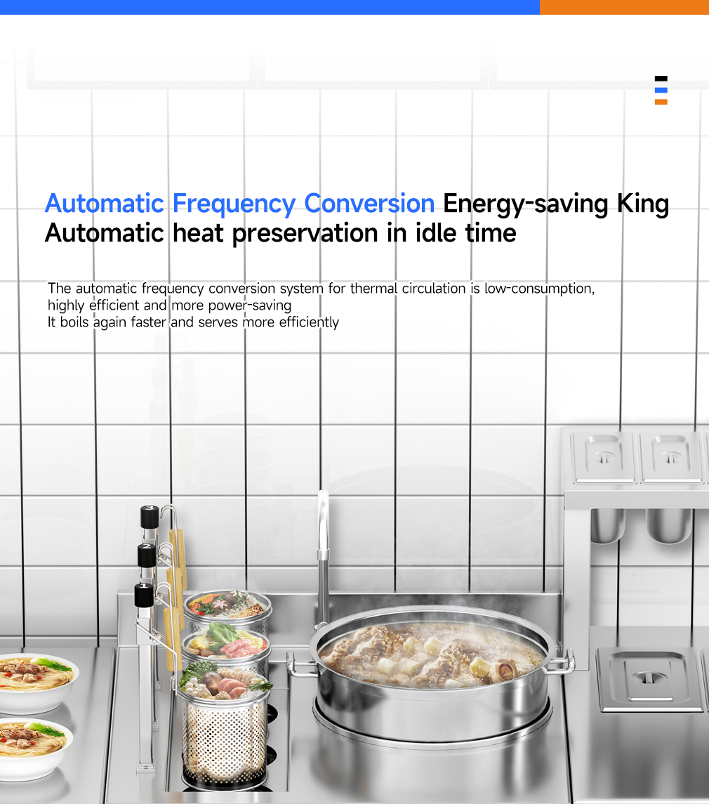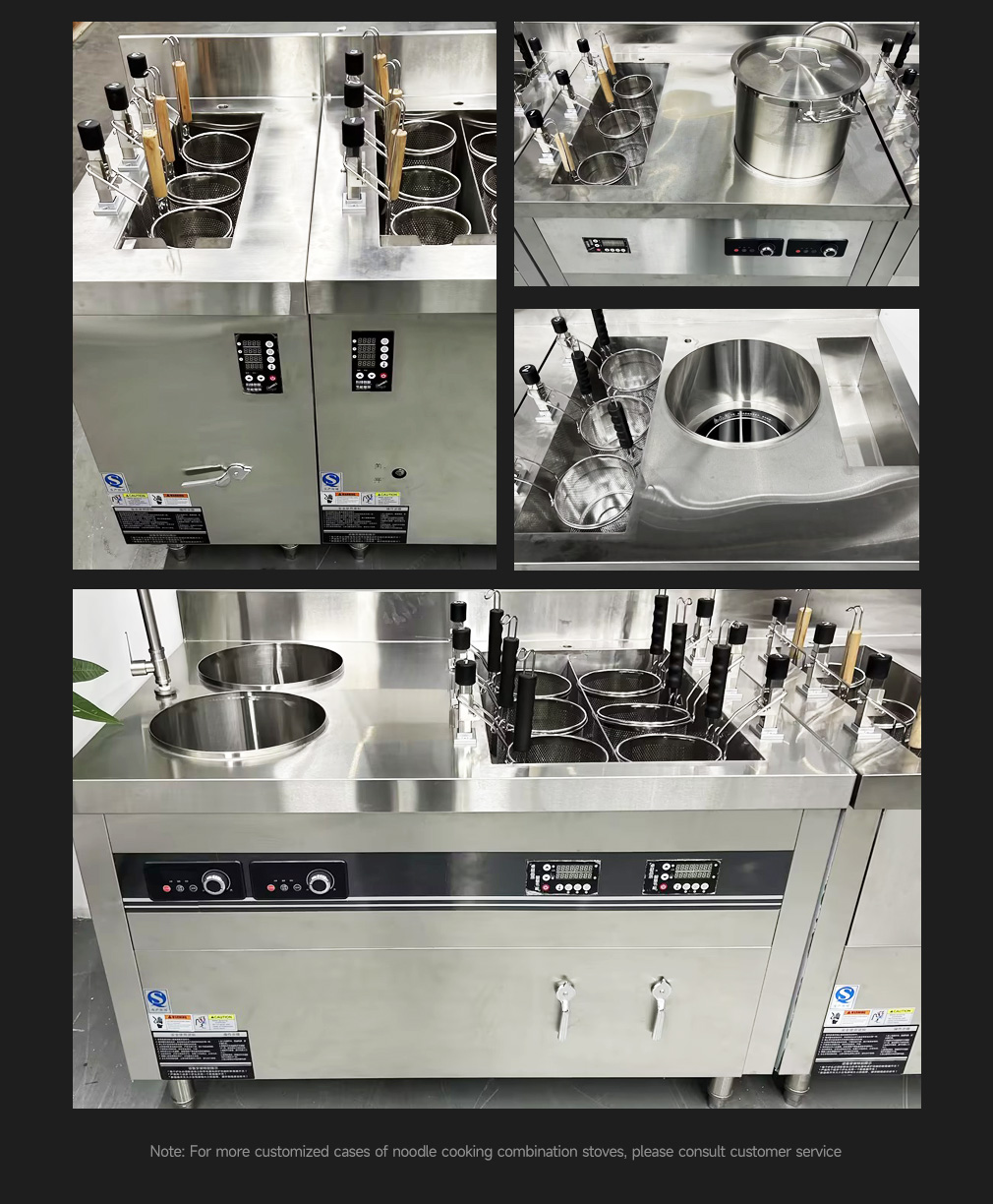 3-head noodle cooking stove + single-head soup stove with a diameter of 40CM + 3-tone seasoning table